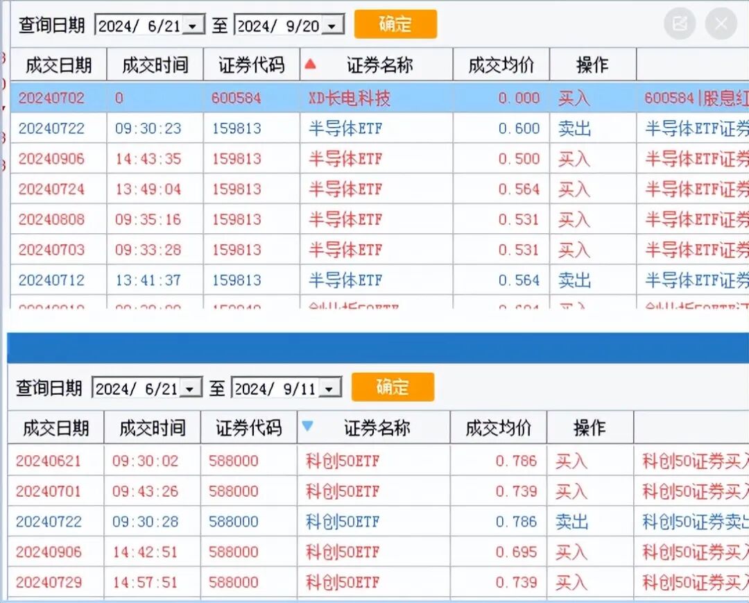 这是我当时网格布局半导体和科创50ETF的交易明细