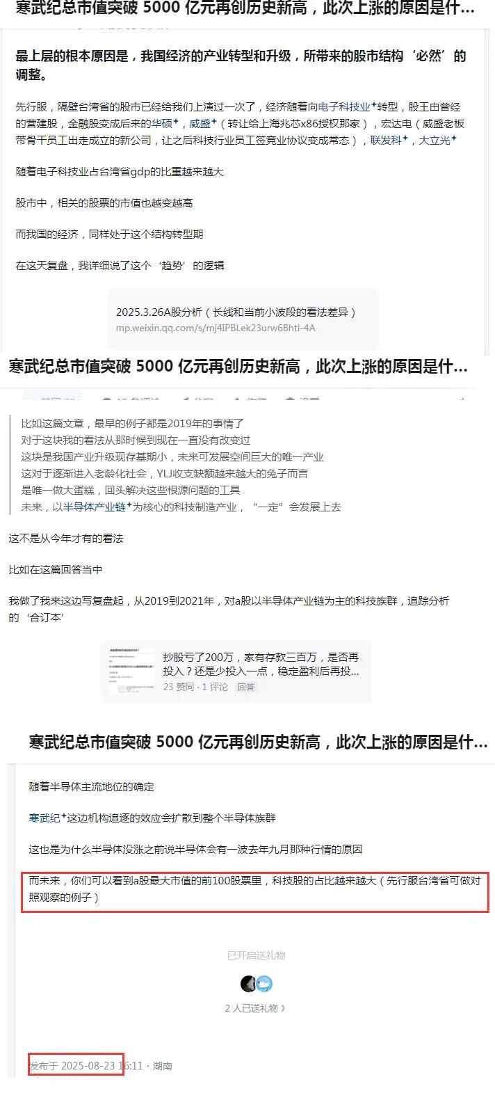 然后在那一轮半导体波段行情的最高点当天,我的认知告诉我