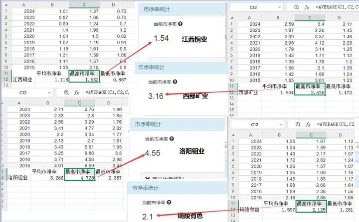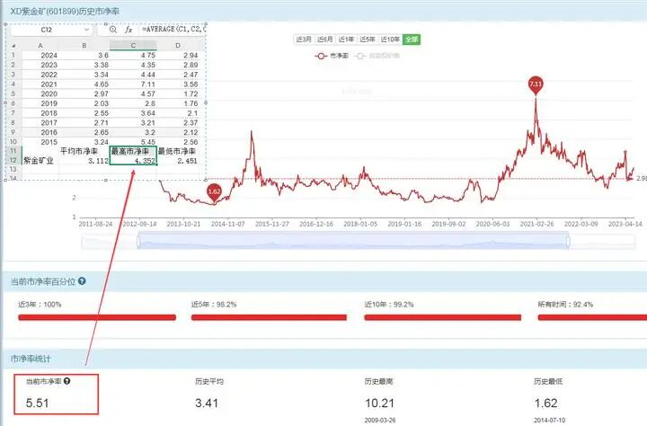 紫金矿业,现在市净率高于过去十年里每一年的市净率最高值的平均数