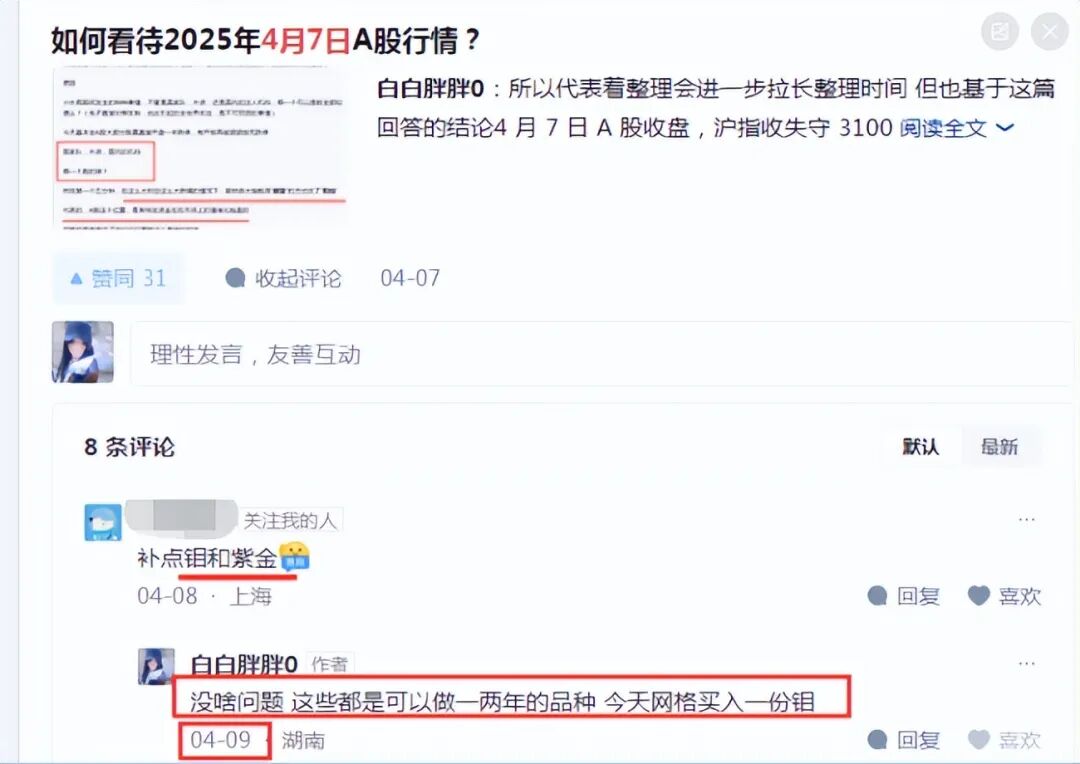 比如4月7日复盘下方,有知友表示补了洛阳钼和紫金