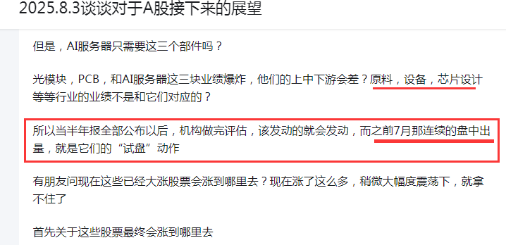 但理由是这段时间的盘整震荡所出现的主动卖压很小,那么在原主流还没走完(半导体),接下来就是三季报公布期间,记不记得8月初判断半导体会启动的基本面原因是什么?