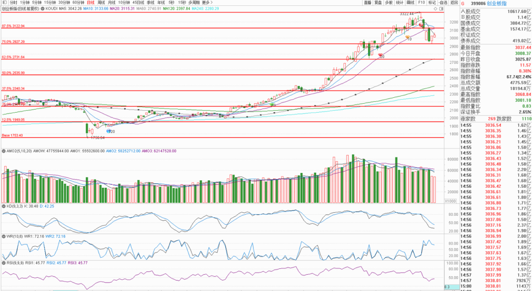创业板昨天是盘整中的孕育线,多头孕育线这么几天的下跌和这个幅度是不够的