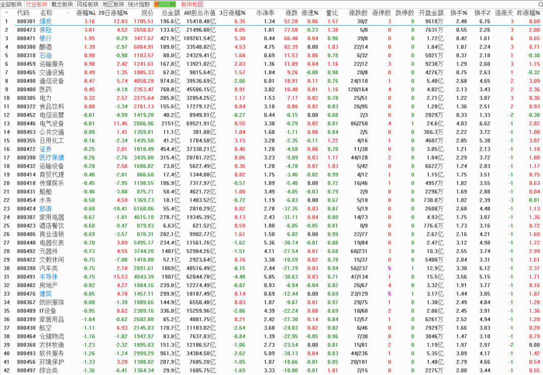 今天涨幅第一,煤炭,是周期股,这一波走势远逊于有色,然后有色现在涨不动,它借着FED鸽派表态上涨,算不算补涨?