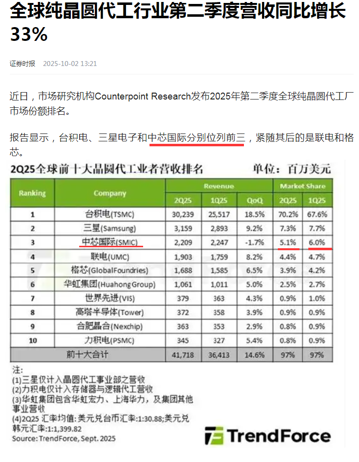 举个例子,晶圆代工,台积电市占70%,未来能增长到140%?