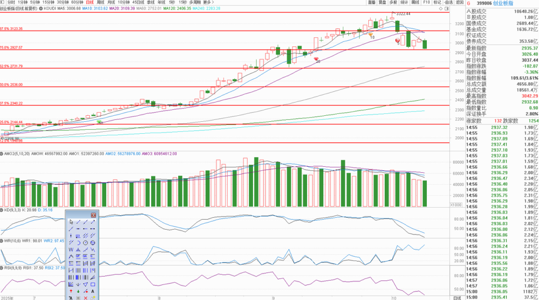 以创业板和权重板块电气设备某技术指标统计学因素接近极限值来说,下周一会有反抽,不收最低留下影线