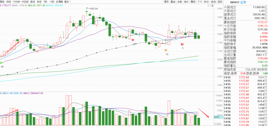 周四周五五日均量扣下来的时间里,如果还不能增量,大盘就要下去找季线了