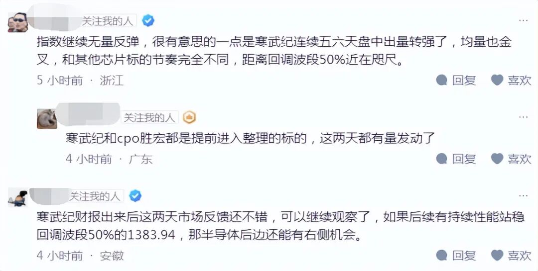 这里寒武纪跟九月初的回调以及之后半导体续涨,它反而提前调整我的解读,以及前两天出财报我的解读一样