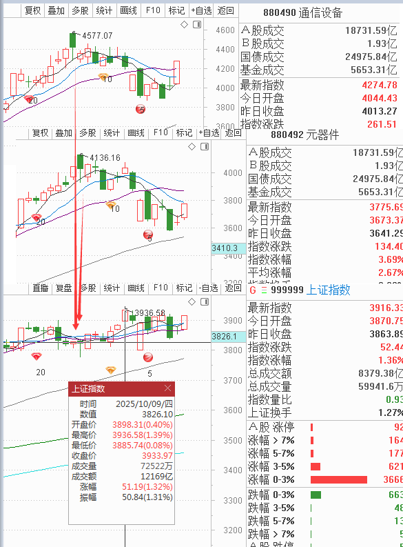 今天它们是涨的多,但是有没有涨到大盘相对的位置?