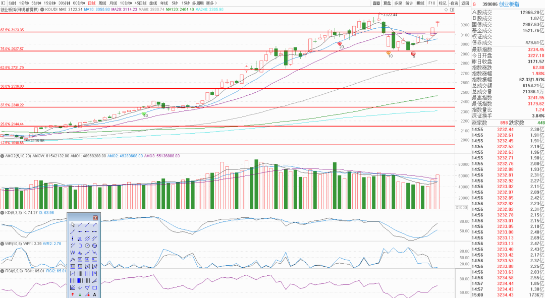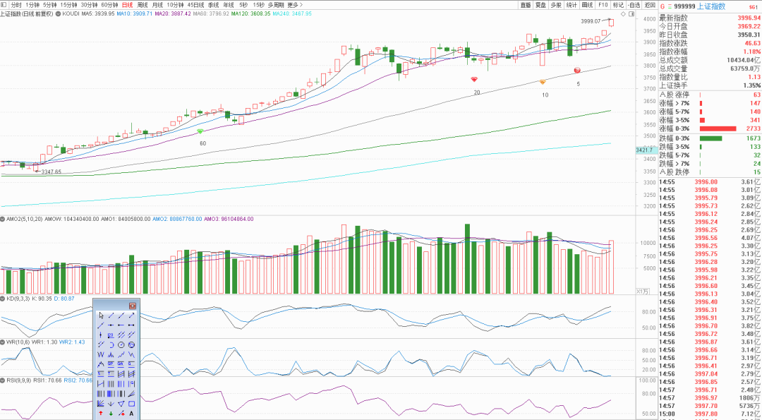 两个指数今天这个技术指标统计学因素依然在超买极限值附近,也就是说明天依然会留上影线