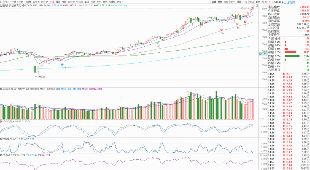 原因么,自然是大盘又双叒叕上4000了,没有持股的怕踏空,所以涌了进来