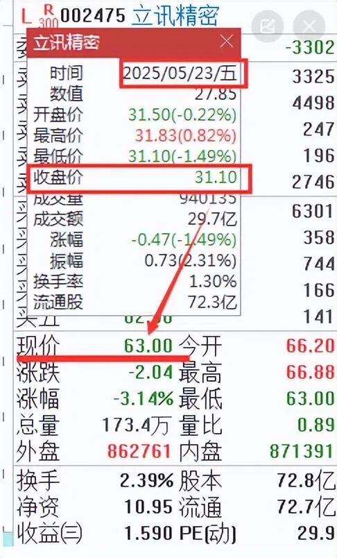 然后从当日收盘价到现价