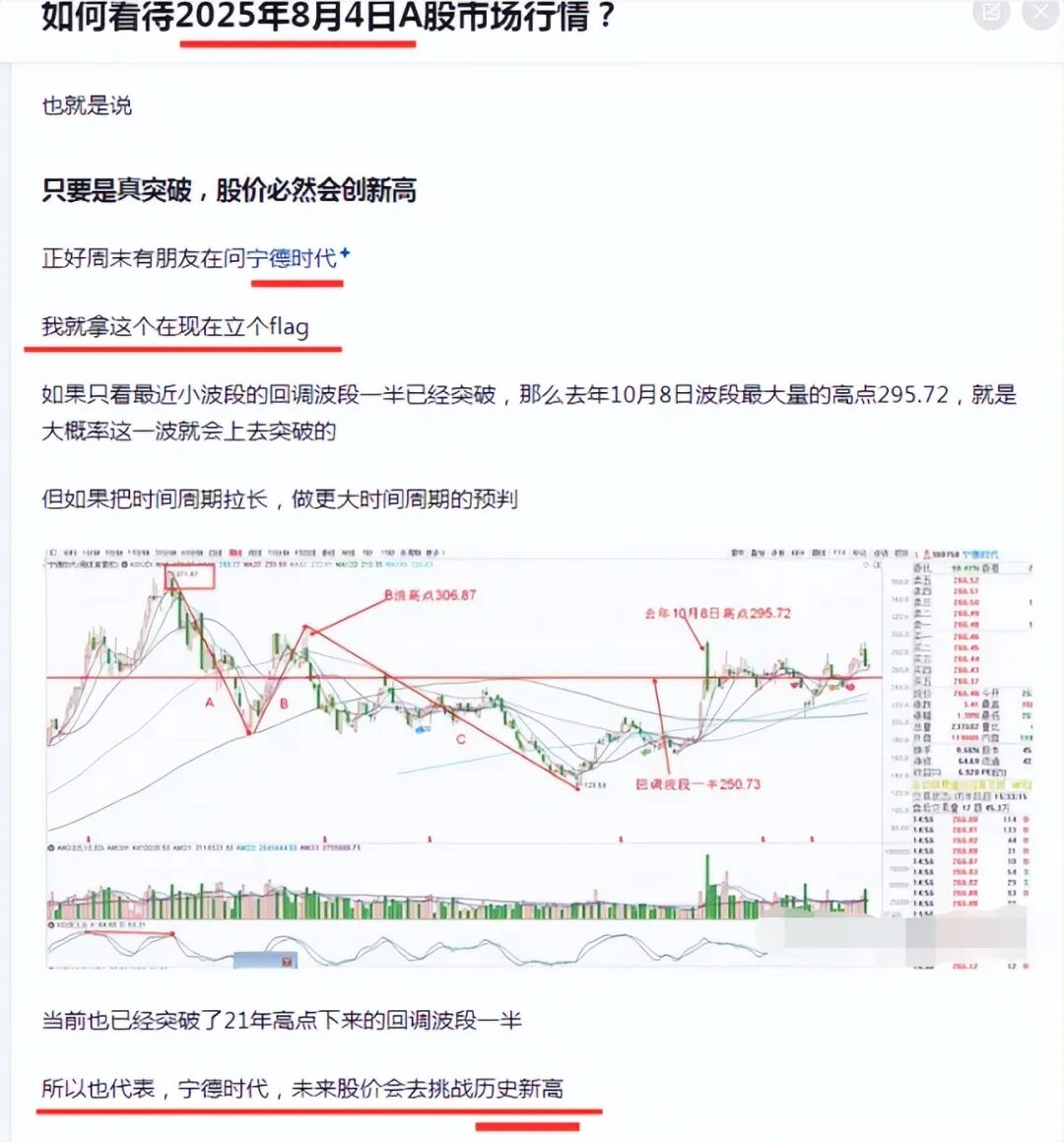 8月4日的时候,当时宁德时代股价266,分析接下来股价