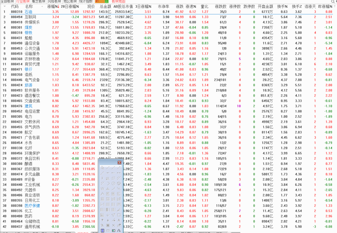 之前的各种弱势品种,有补涨的(石油钢铁煤炭),有轮动着反弹的(医药互联网旅游等)