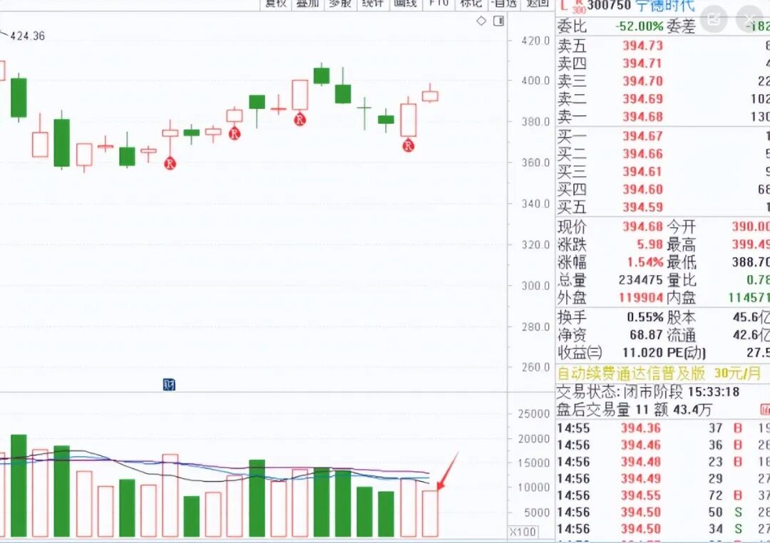 宁德连续上涨两天,却持续低于上涨趋势基准量