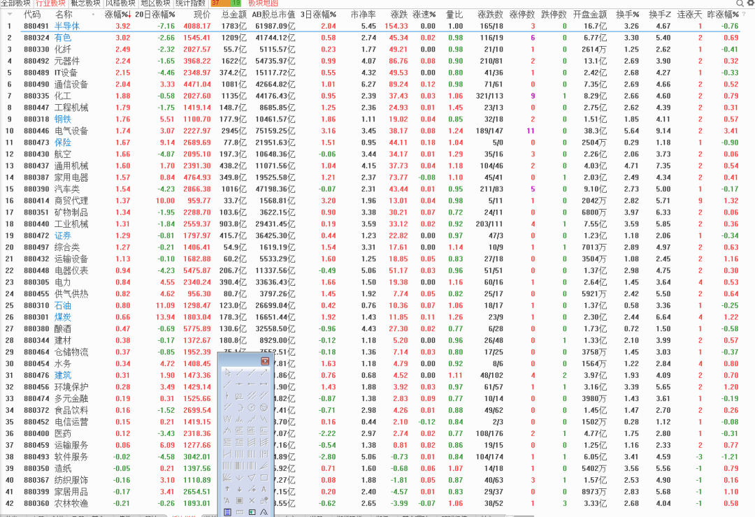 今天涨幅第一的半导体增加的多,比昨天增加了42%