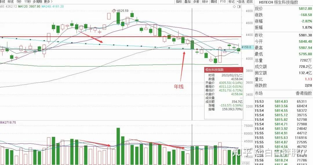 然后这是当日能够看到的恒生科技指数的技术面信息