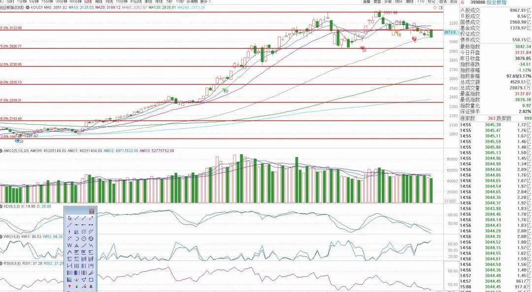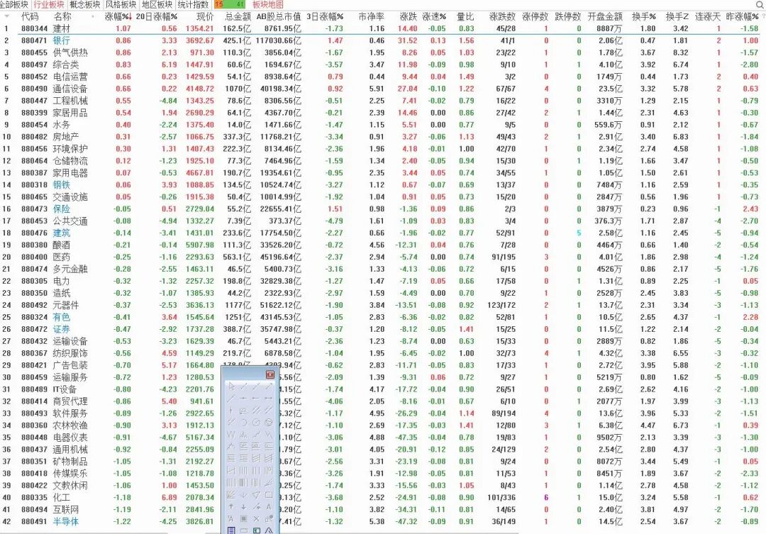 多头趋势的中期修正,就是看指数下跌的时候,哪一块能提前指数落底转强(指数跌不跌,指数没量它有,指数负斜率向下,它能够做出底部K线形态,去看我2017年5月那会的复盘,写的很详细)