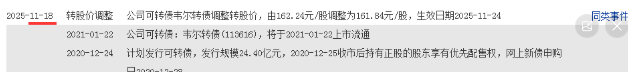 11月18日豪威因为股本变化,修正了一点2021年发行的可转债转股价格