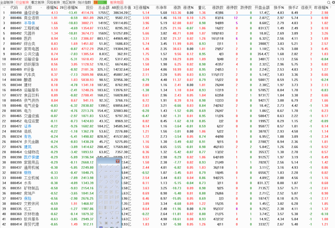 然后通信设备多头反转,1今天没有跳空缺口,2成交金额不是中间最小左边次之右边最大,3并未收盘封闭当日向下跳空缺口