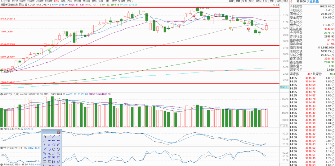 创业板多头吞影线,“ 短线 ”偏多解读(轮跌过程,权重造成的假象,赚指数赔价差的事情就是这么回事)