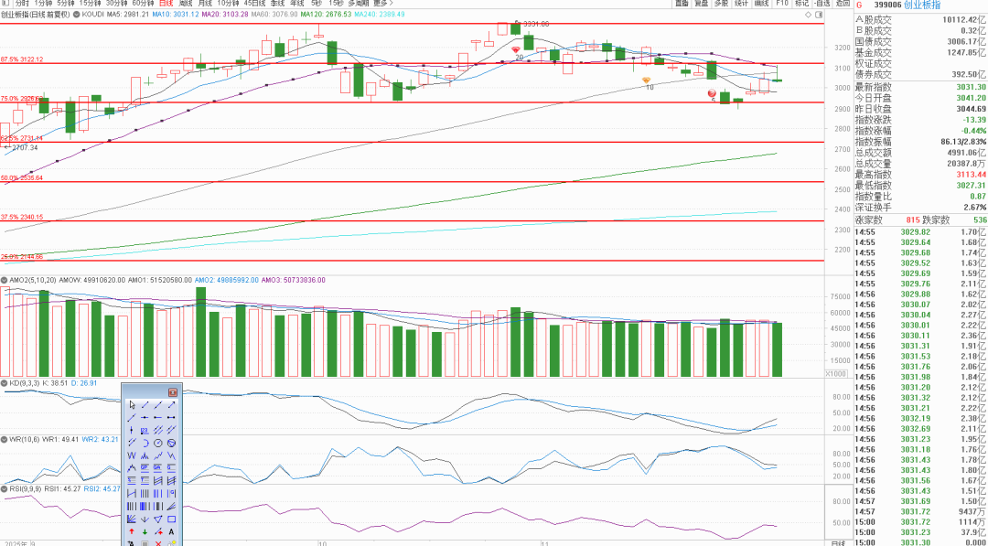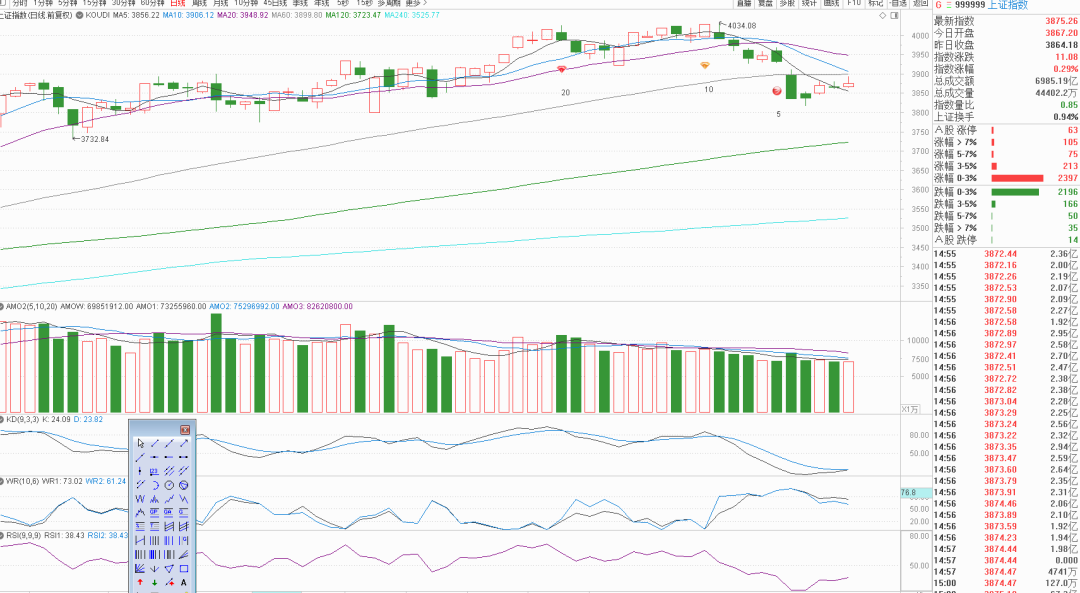 两个指数今天同步缩量,所以下弯的均线是压力,上扬的均线支撑薄弱