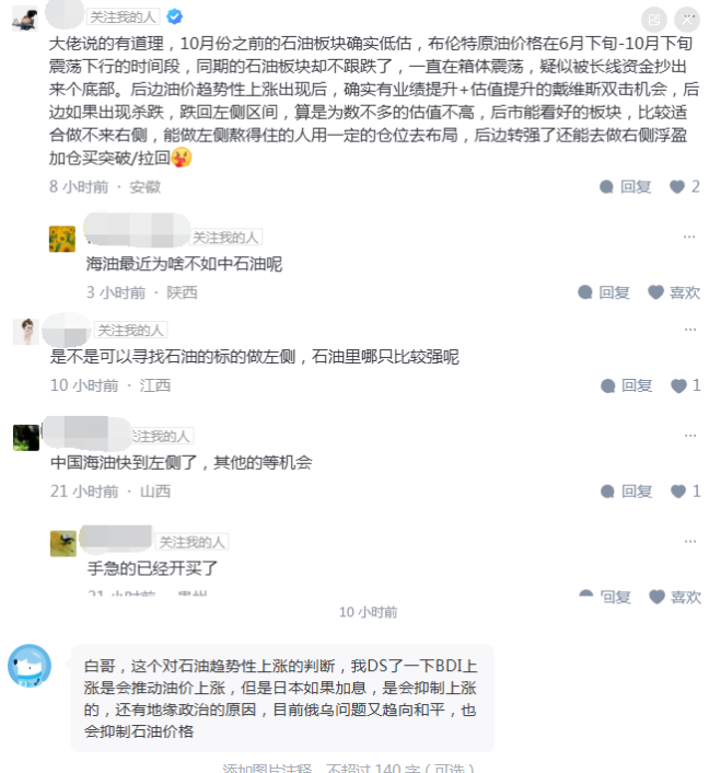 而未来油价上涨,对于三桶油的业绩影响,在这天的复盘我有具体叙述