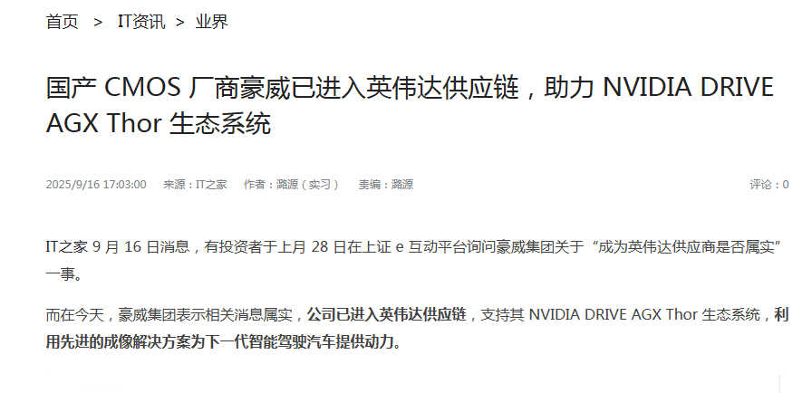 也就是说,届时使用 NVIDIA DRIVE AGX Thor的车厂可能都会转用豪威,的确新能源车总需求会降低,这代表豪威会降低吗?