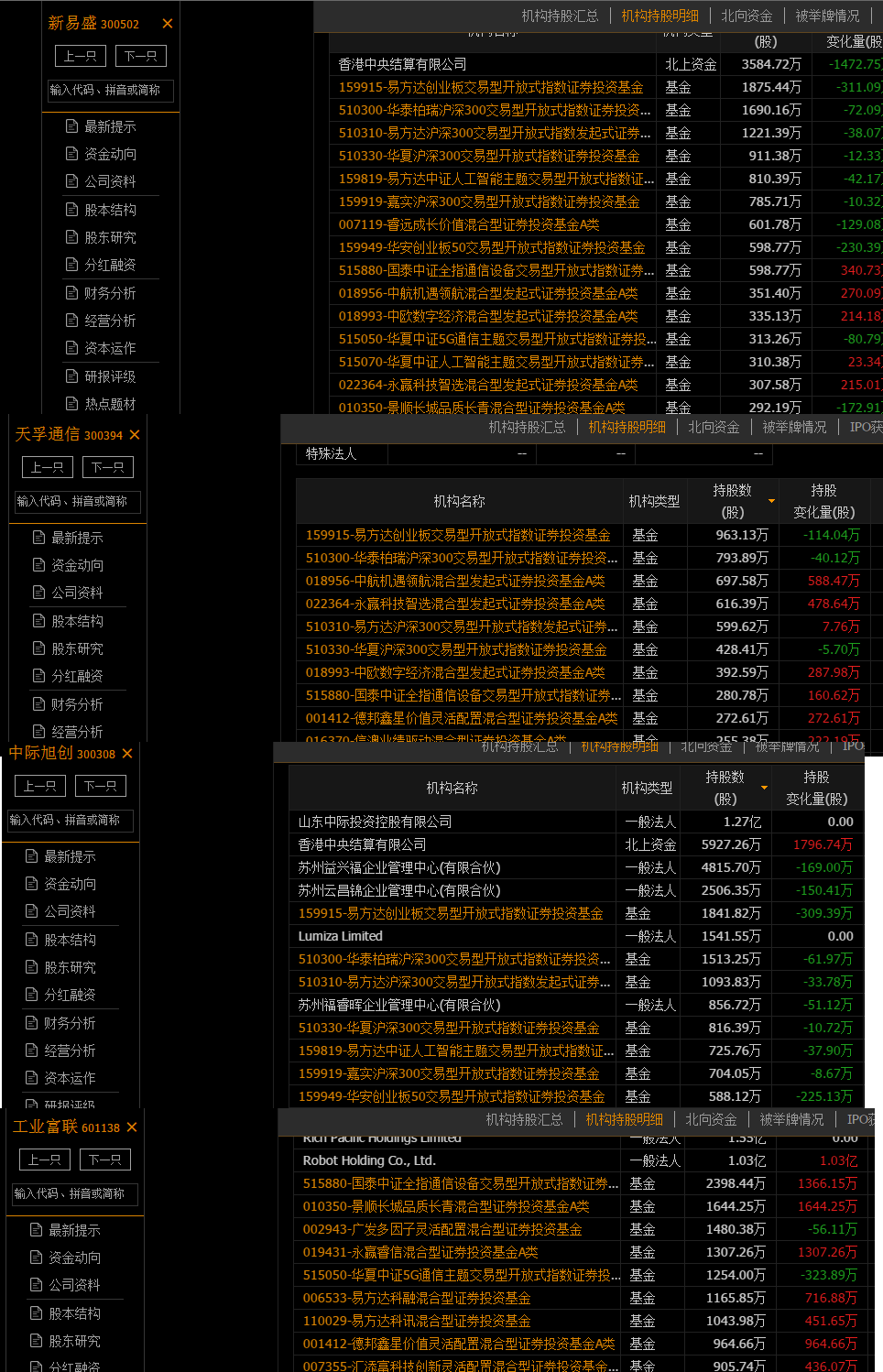 可以看到,持有四家股票股票数量最多的机构,易中天以被动型指数基金为主,而工业富联以主动基金为主