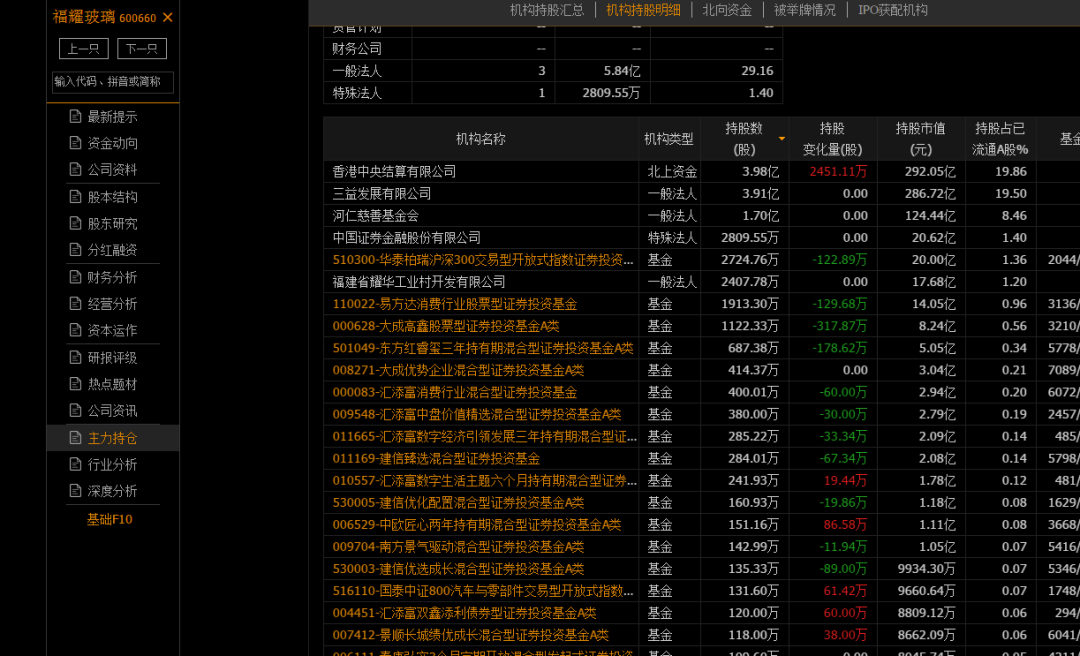 对于福耀这种持仓机构主要以主动基金为主