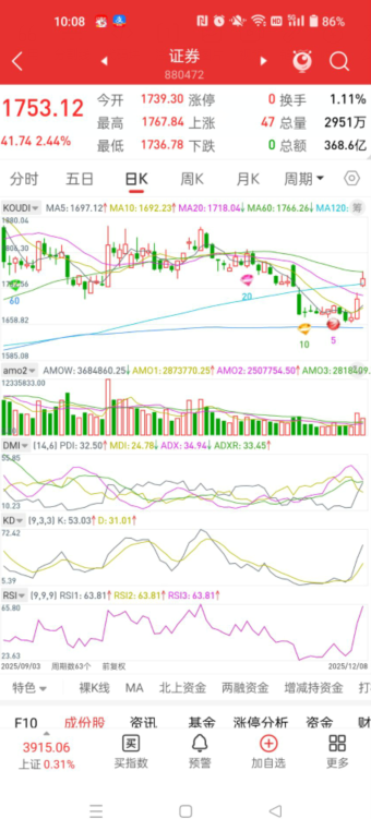 10点出头证券还涨着2.44%的时候为了晚上说这个我特地截了个图