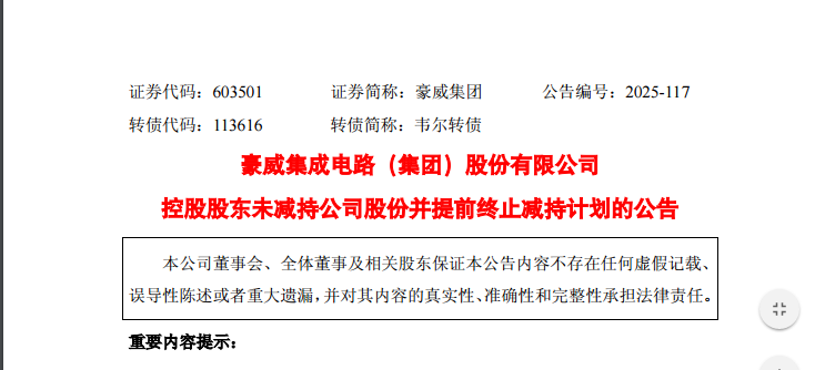 关于豪威这里不减持,在他公告要减持的时候我就已经说过