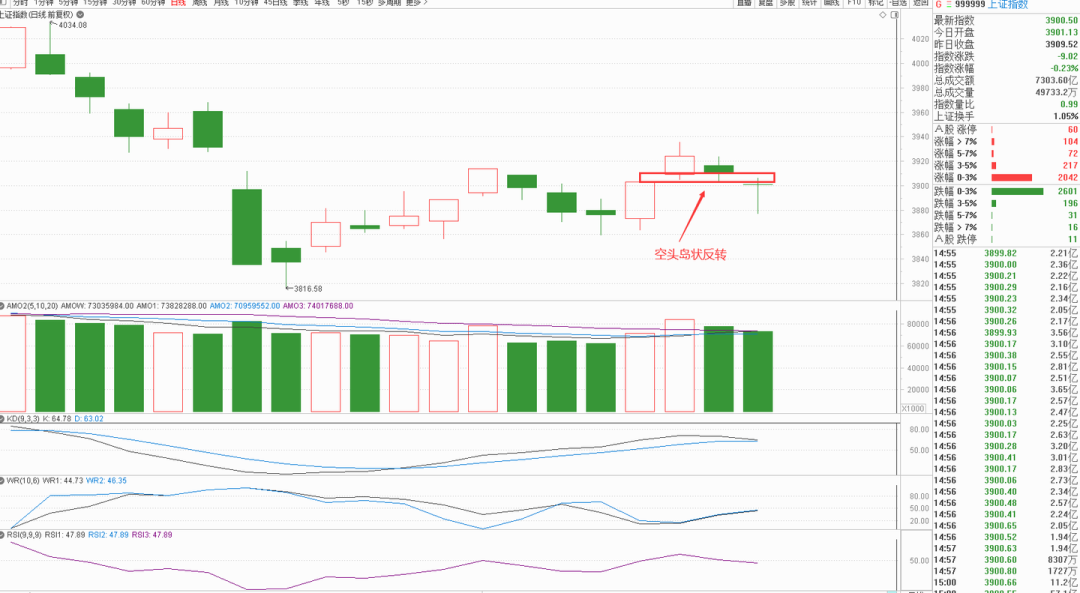 K线角度,上证空头岛状反转,偏空解读