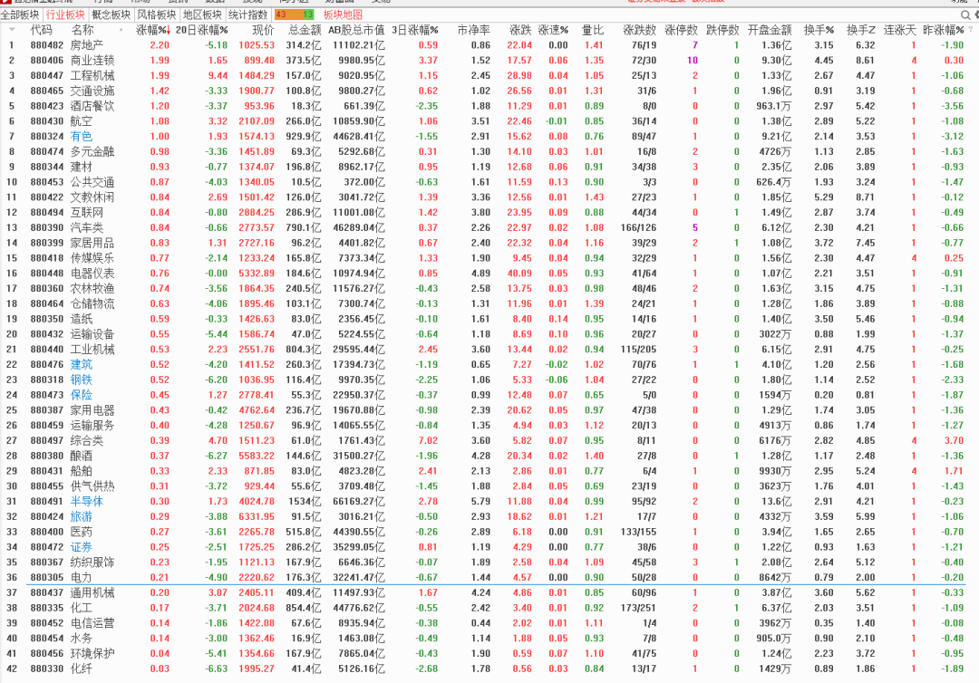 而今天上涨第一的房地产