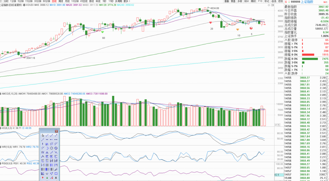 如果还是现在这样常态低于各级均量扣抵量,那么下弯的均线是压力,上扬的均线支撑薄弱