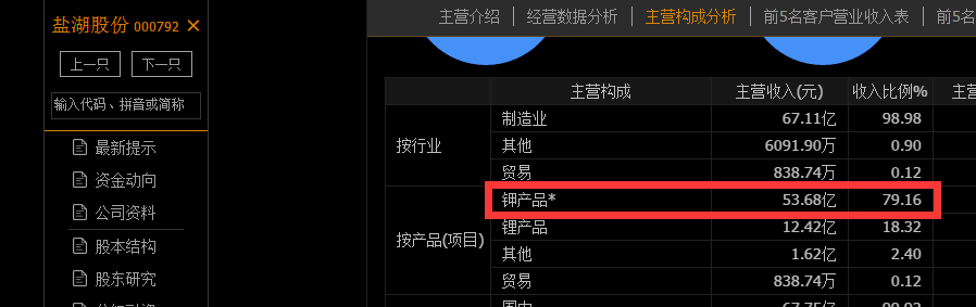 可以看到,盐湖股份营收接近8成都是钾