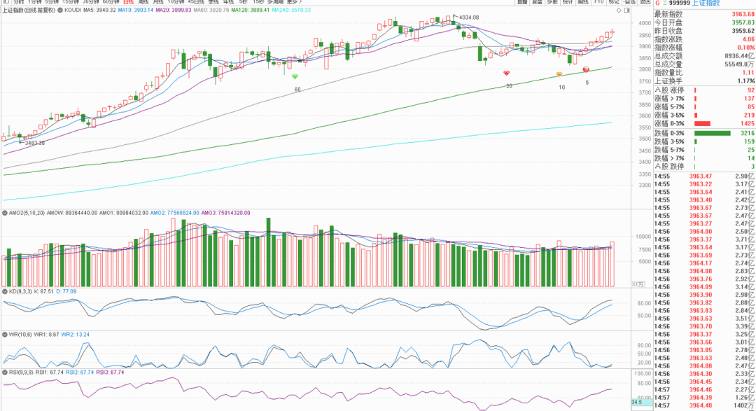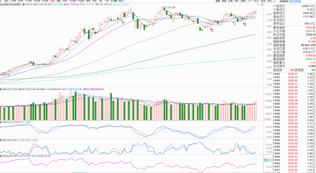 然后从涨跌比例,就可以知道,买盘更多的结果只是少部分权重上涨让指数阳着,而全市场大部分标的是陷入回调了的