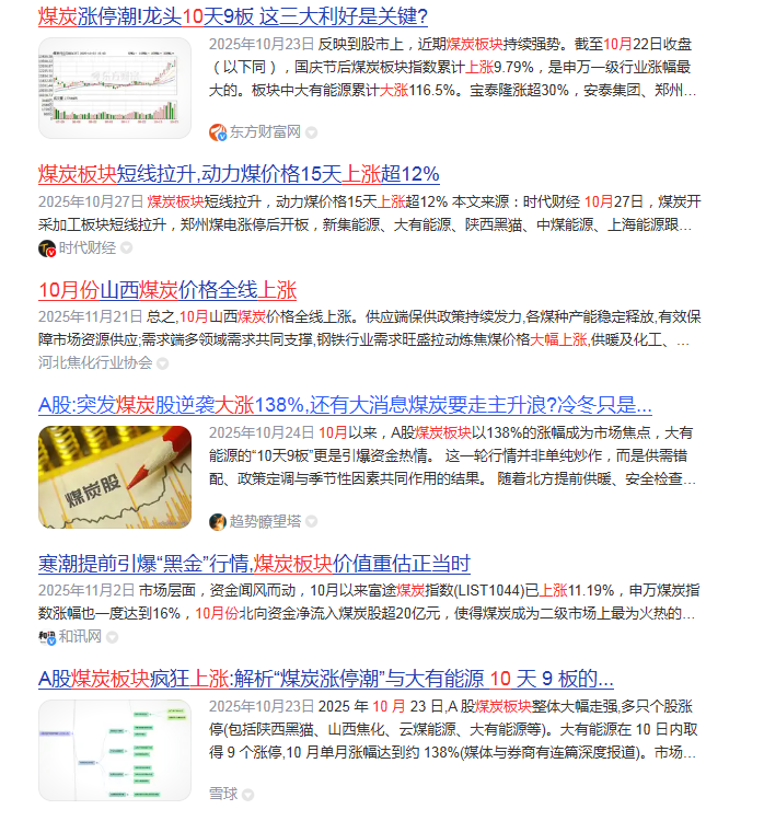 就比如之前10月很强的煤炭板块,当时复盘里还有不少朋友问