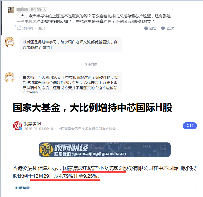增持中芯H股的幅度巨大