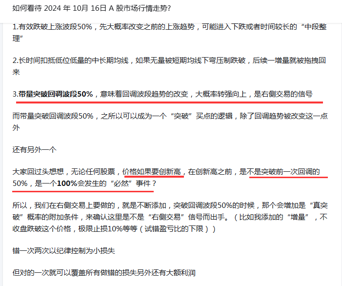 2024.10.16A股分析(买回调波段50%带量“突破”的逻辑)