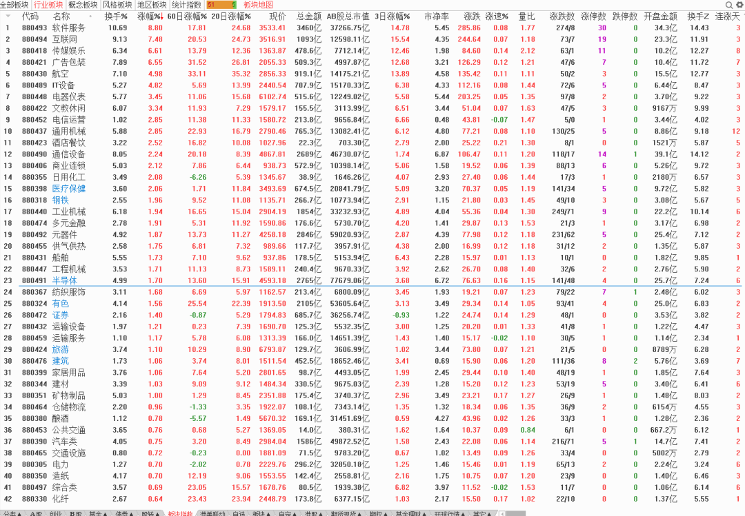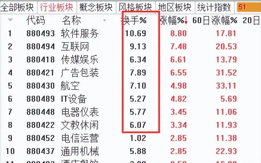 这是今天涨幅靠前的族群的换手率