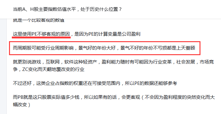 周期股不能用PE估值