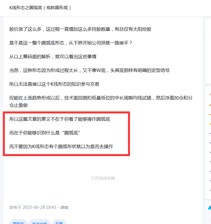 另外圆弧底这个形态不是你看着像圆弧底就是