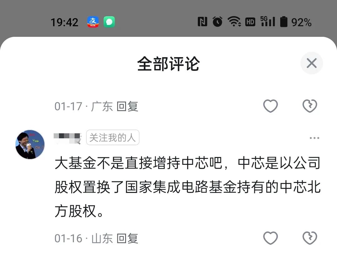重点不是大基金这里花没花钱。是股权置换还是其他